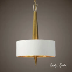 - Simple yet impactful, the Bryant chandelier is crafted of steel with a Satin Brass finish and five candle holders extended from a single arm.