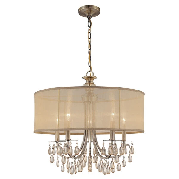 - Hampton Antique Brass Five-Light Chandelier with Etruscan Smooth Oyster Crystal