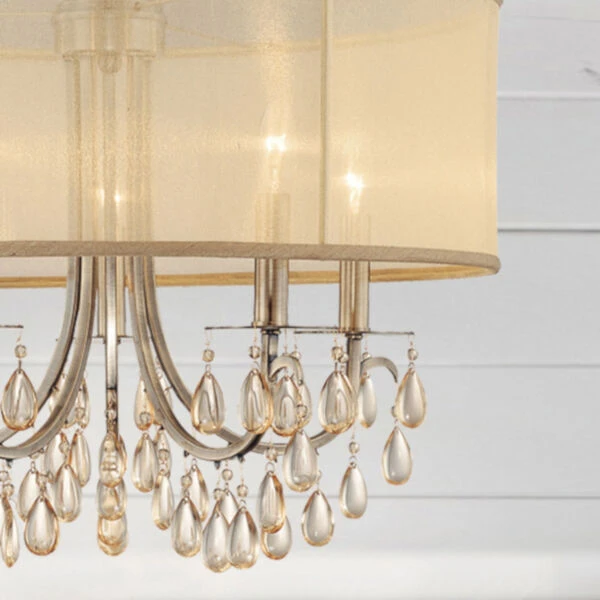 You can’t go wrong with a classic like the Hampton, a elegant transitional light that looks good in any room of the house. Stylish, modern and minimal, the fixture features a shimmering drum shade on a stately frame draped with smooth teardrop almond crystals. Whether in a formal or relaxed setting this fixture is sure to be the focal point of any room in the house.