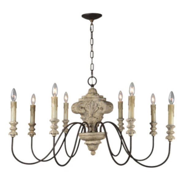 - Iris Weathered Wood and Black Eight-Light Chandelier
