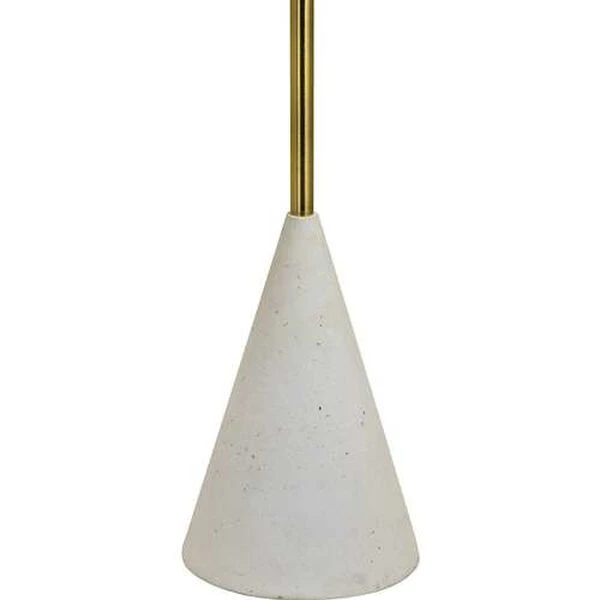 A cone shaped speckled terrazzo base makes this floor lamp stand out. The antique brushed brass iron structure is topped with an off-white cotton shade. The foot switch makes it easy to illuminate the space.
