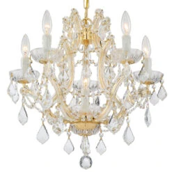- Draped in an abundance of crystal, the Maria Theresa collection is the epitome of high style. The fixture is stunning with glass arm frame decked with strands of faceted cut crystal. The fixture showcase opulence and decadence and is the perfect traditional accent to any space. Whether in a living room, or even closet or hallway, this fixture bring a luxurious addition to any decor.